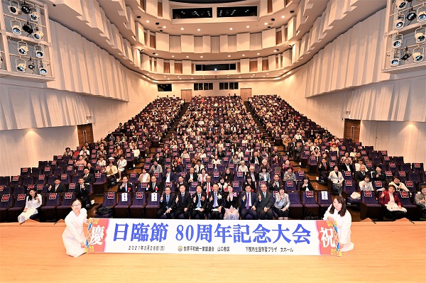 3月28日、文鮮明総裁が日本に初めて山口県下関からご入国された1941年4月1日を記念する「日臨節80周年記念大会」が山口県下関市の会場で開催されました。