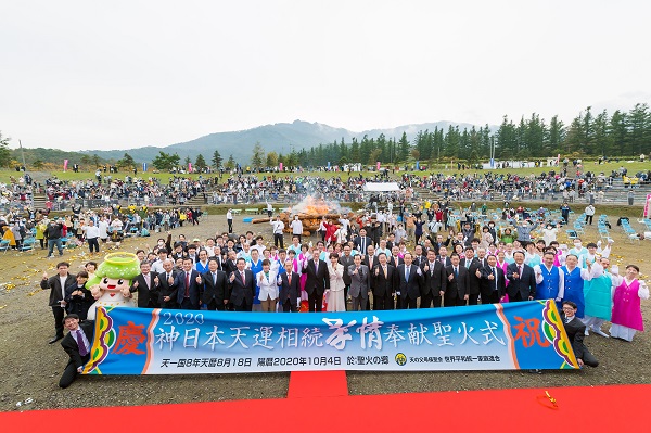 10月4日、北海道上川郡清水町の聖火の郷において「2020神日本天運相続孝情奉献聖火式」(主催:天の父母様聖会・世界平和統一家庭連合)が開催されました。会場には北海道の家庭連合の責任者および会員を中心に1200人が参加。同式典はインターネットでも中継され、全国で約35000人がオンラインで参加しました。